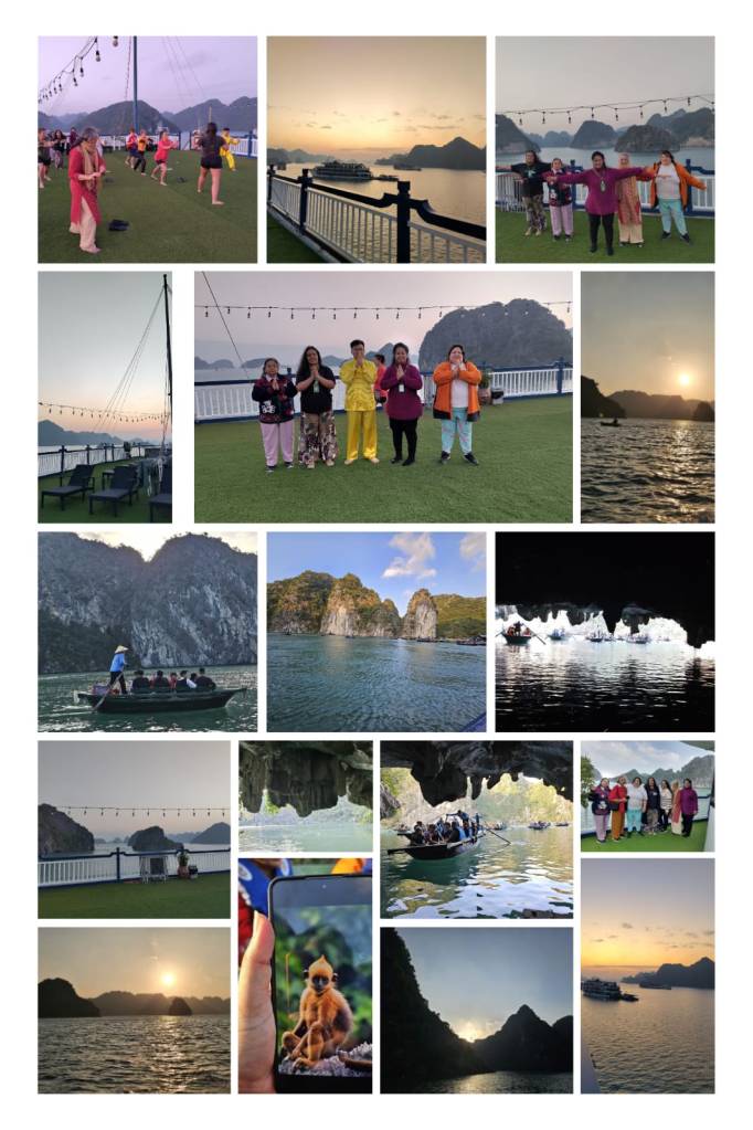 Happy New Year 2026!! Its been a nice rest for a while over the Christmas break. Have had a wonderful family holiday in Vietnam and Cambodia and as promised, here are the January holiday highlights !! We made a tour of the north and the south of Vietnam and then Cambodia over around 13-14 days, since this is our first visit, leaving the central part of Vietnam for another trip in future. I have shared the itinerary, and highlights included a significant stay in Hanoi and exploring the Old Quarter, Ha Long Bay and Lan Ha Bay (as well as the optional kayaking for the braver sister of mine!) I particularly enjoyed exploring the limestone cave by Bamboo boating; and the early morning Tai Chi over the sunrise was a dream. We even saw one or two langur monkeys high up in the tree tops near Cat Ba island. It was my favourite spot in first part of the trip and the stunning location overcame the more commercial aspects of the cruise. Still the staff were very helpful and we have a really pleasant stay in Ha Long Bay. The company with my aunties and sister was fantastic and what better way then celebrate our combined birthdays- 40th and 70th in 2025 together dancing to some Bollywood numbers until the early hours! I am definitely taking up Tai Chi as my new year’s resolution. This trip was just the starting point of a wonderful journey through the history of Vietnam and Cambodia and the wider SE Asia region which we began to explore through the numerous museums and can continue to explore from afar. Such a brilliant conclusion to be able to visit some of the places only previously seen on the map during our blue carbon project!