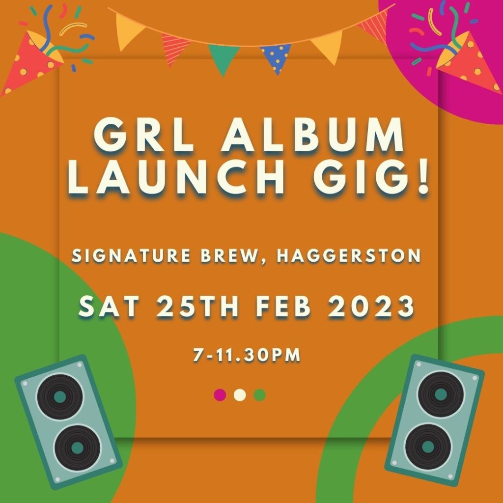 For the last six months I have been working on my creative musical skills as part of the Girls Rock London Album Programme!!! Girls Rock London (GRL!) is an award-winning not-for-profit organisation that creates opportunities for women, girls, and trans and non-binary people to make and perform music. They provide high-quality music programming for young and adult women, trans, and non-binary people, with a specific focus on increasing access for people who face barriers to participation. Learn more about GRL here. The GRL album programme involves individuals coming together and taking part in a series of creative workshops and inspiration sessions. We ultimately form bands together and work on songs to release in the first ever GRL album!